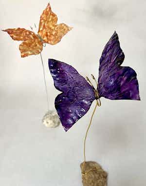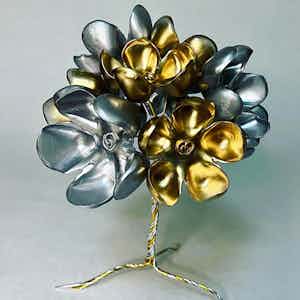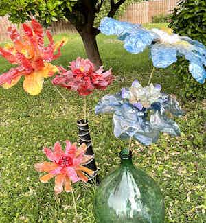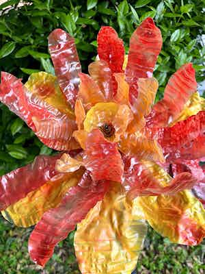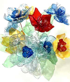 Artiste dans l'âme, j'ai souhaité m'investir à ma manière dans la cause environnementale, en valorisant des déchets par le design et la création. De mes premiers essais avec des bouteilles plastique est née une vraie passion, trouvrant là un réel potentiel de conception novateur. Infiniment inspirée par cette matière, je la transforme manuellement en ornements fantastiques, et l'associe parfois à mes peintures, leur apportant ainsi une singularité sans pareil. Je récupère également des objets dont on n'a plus l'usage et leur donne une nouvelle vie, sur le principe de l'upcycling, limitant ainsi la pollution.