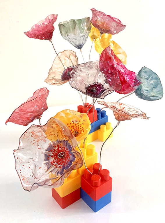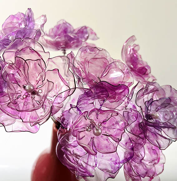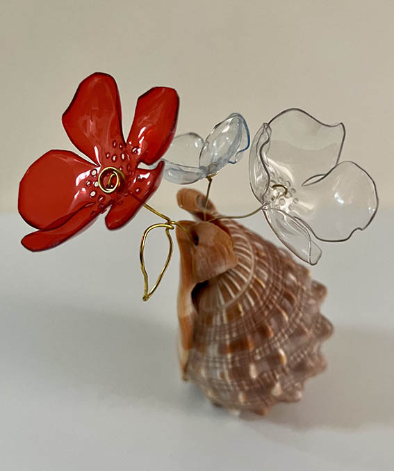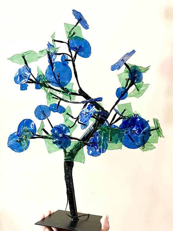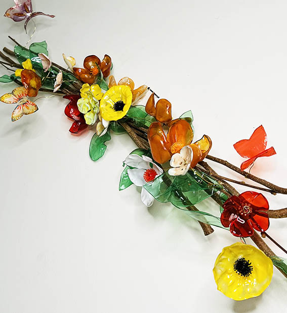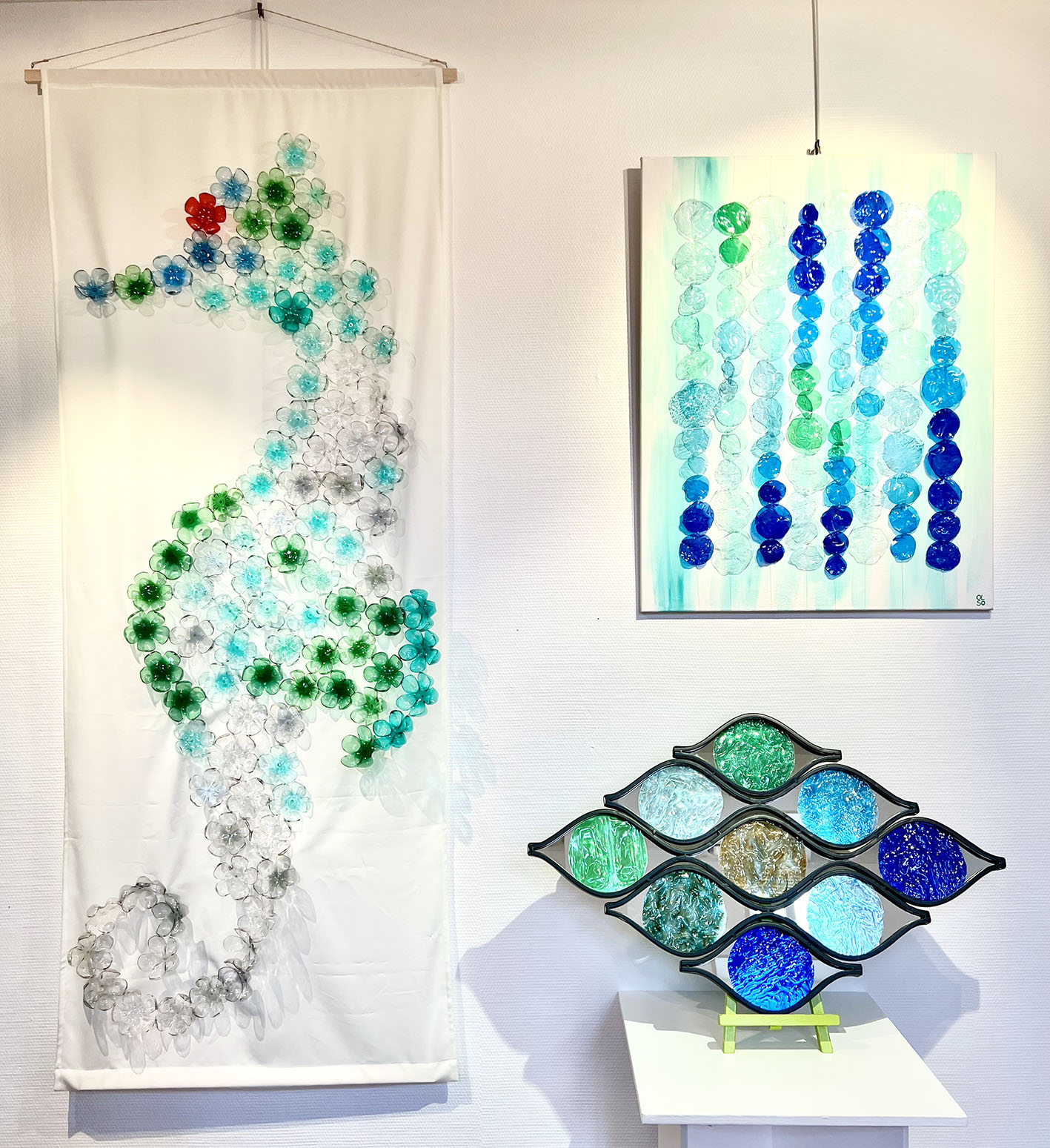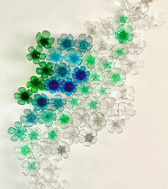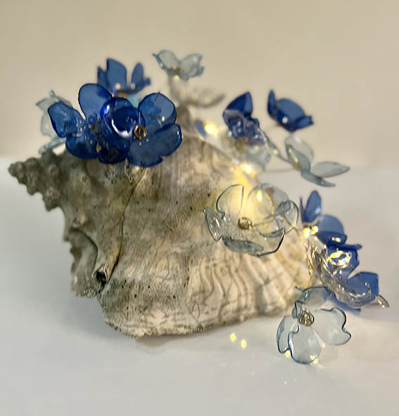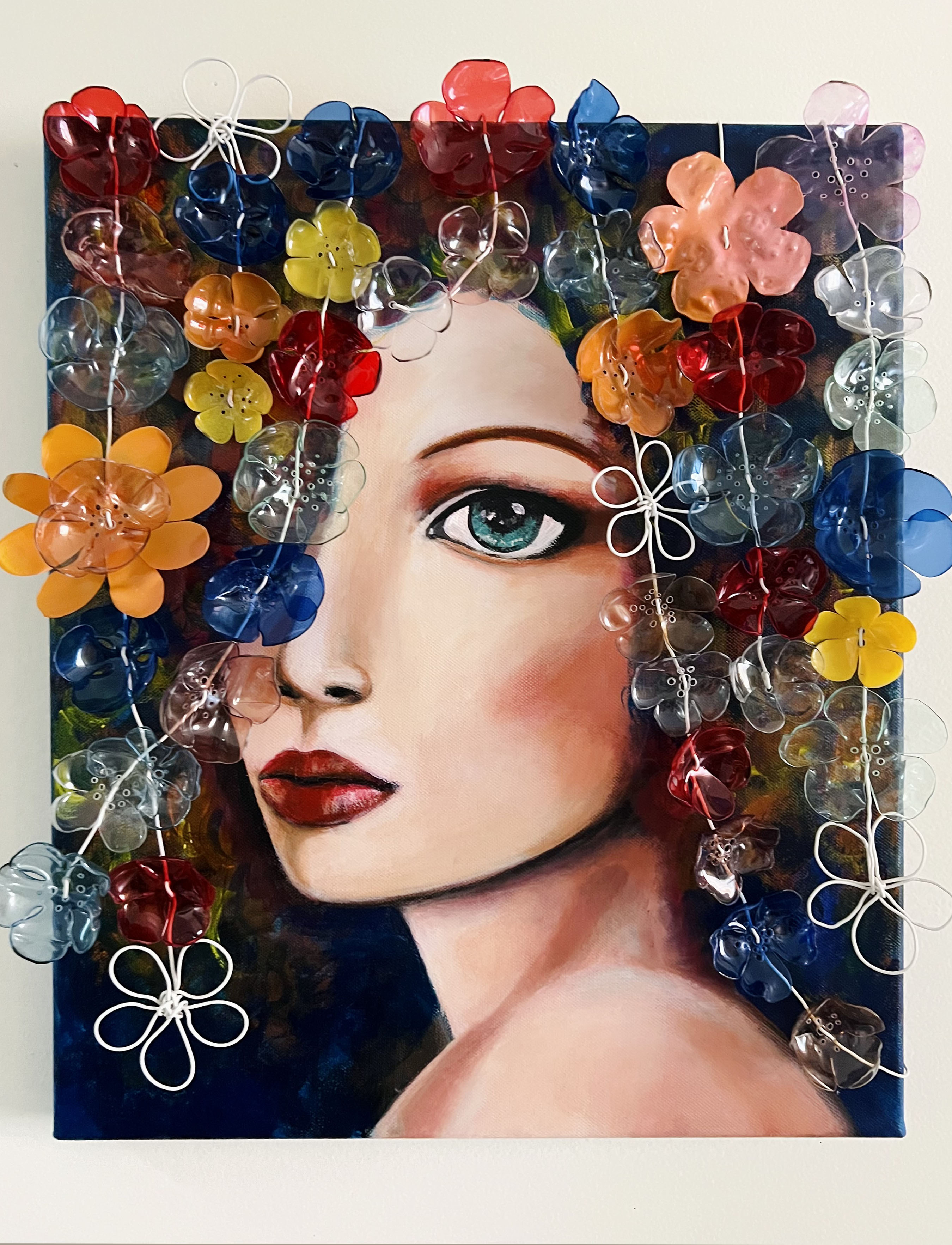 Artiste dans l'âme, j'ai souhaité m'investir à ma manière dans la cause environnementale, en valorisant des déchets par le design et la création. De mes premiers essais avec des bouteilles plastique est née une vraie passion, trouvrant là un réel potentiel de conception novateur. Infiniment inspirée par cette matière, je la transforme manuellement en ornements fantastiques, et l'associe parfois à mes peintures, leur apportant ainsi une singularité sans pareil. Je récupère également des objets dont on n'a plus l'usage et leur donne une nouvelle vie, sur le principe de l'upcycling, limitant ainsi la pollution.