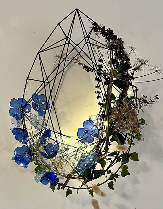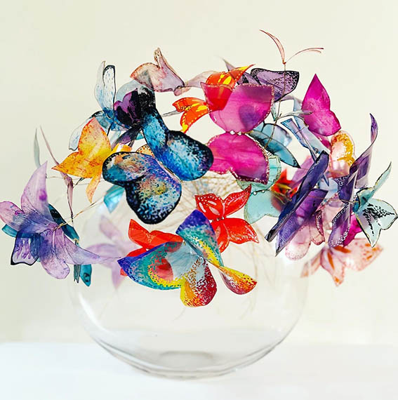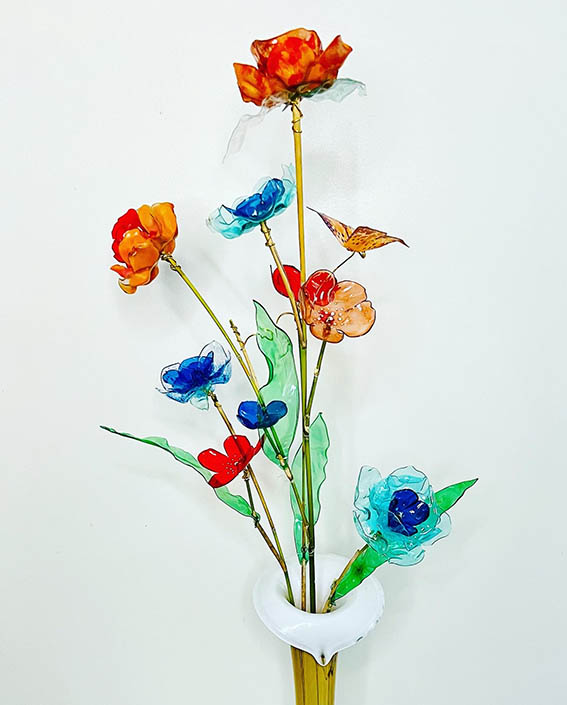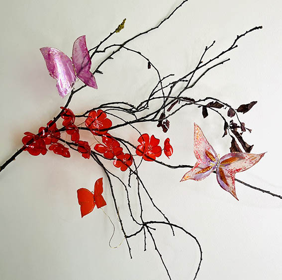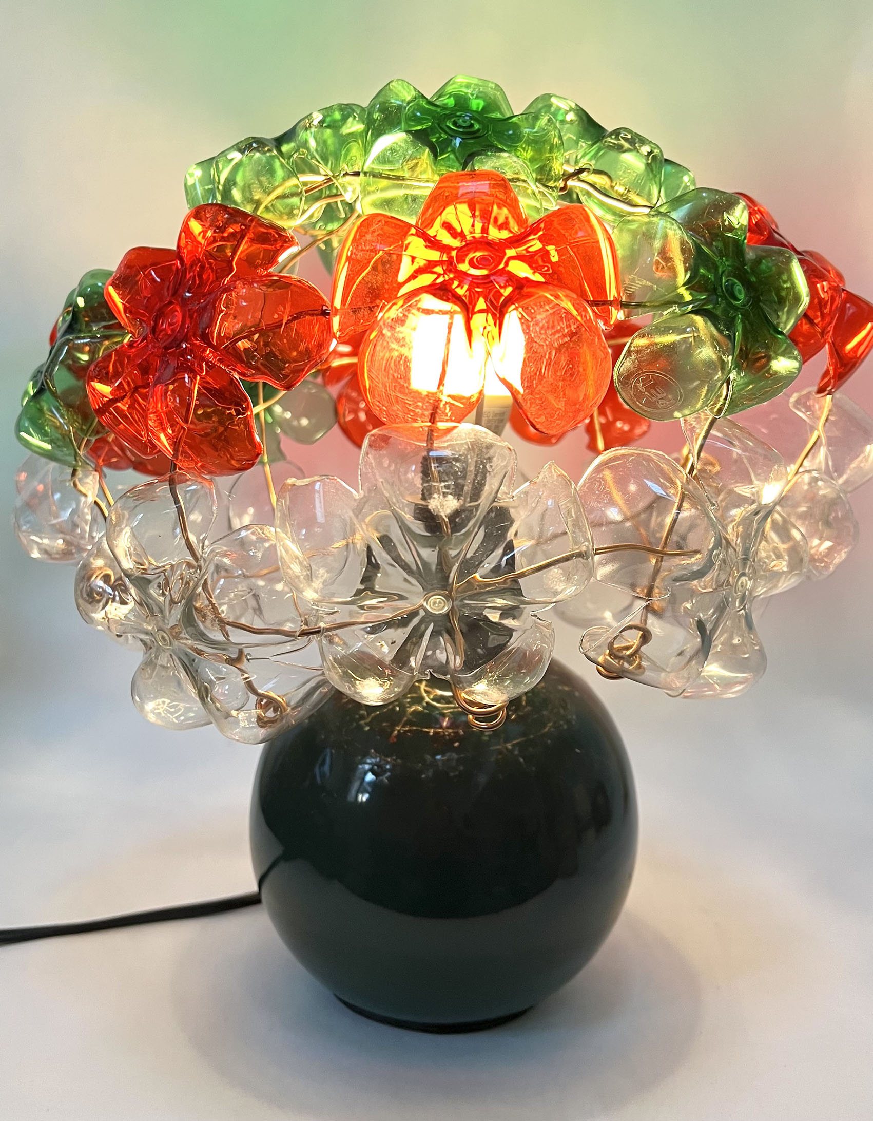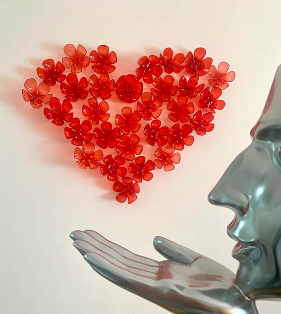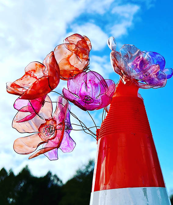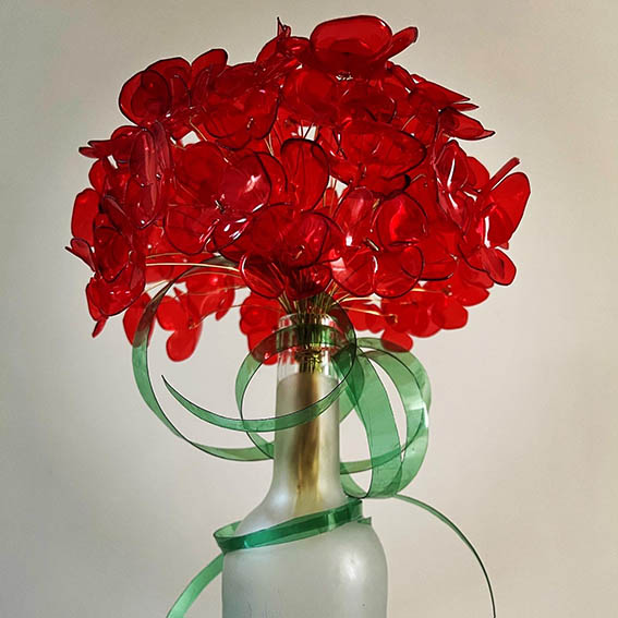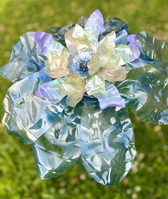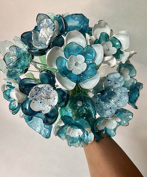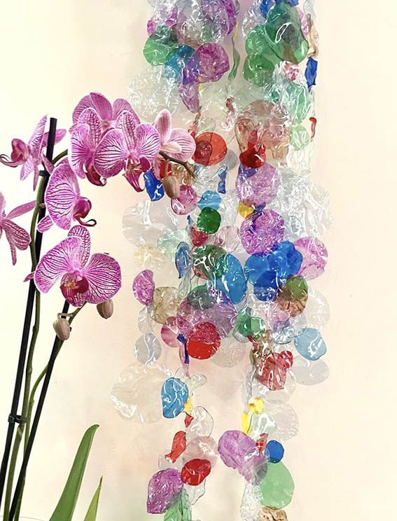 Artiste dans l'âme, j'ai souhaité m'investir à ma manière dans la cause environnementale, en valorisant des déchets par le design et la création. De mes premiers essais avec des bouteilles plastique est née une vraie passion, trouvrant là un réel potentiel de conception novateur. Infiniment inspirée par cette matière, je la transforme manuellement en ornements fantastiques, et l'associe parfois à mes peintures, leur apportant ainsi une singularité sans pareil. Je récupère également des objets dont on n'a plus l'usage et leur donne une nouvelle vie, sur le principe de l'upcycling, limitant ainsi la pollution.