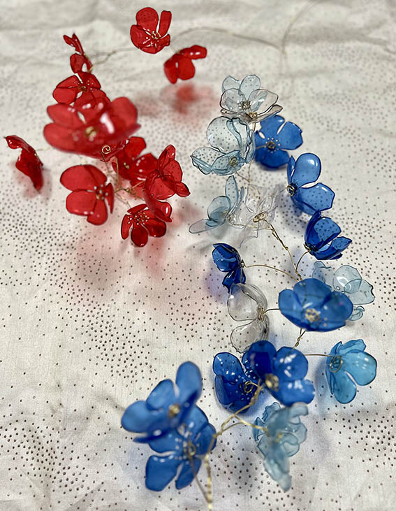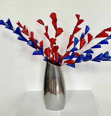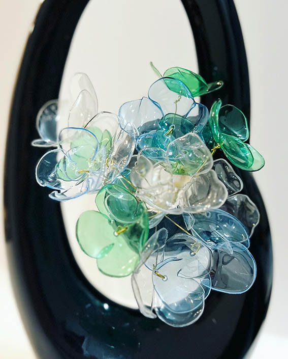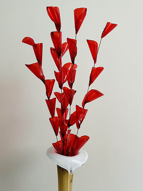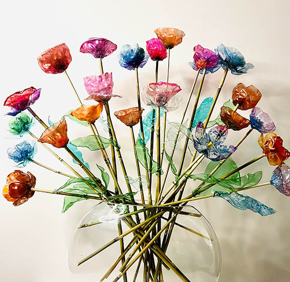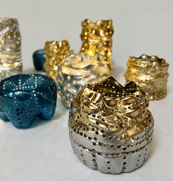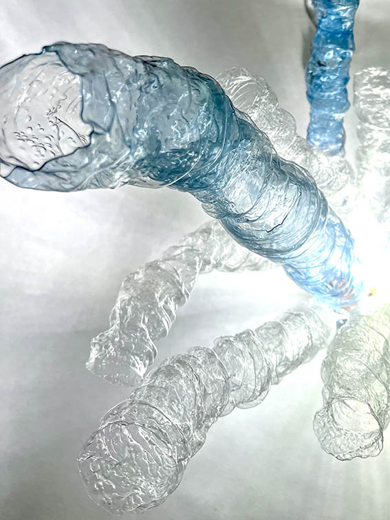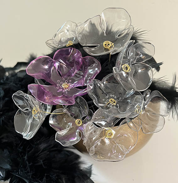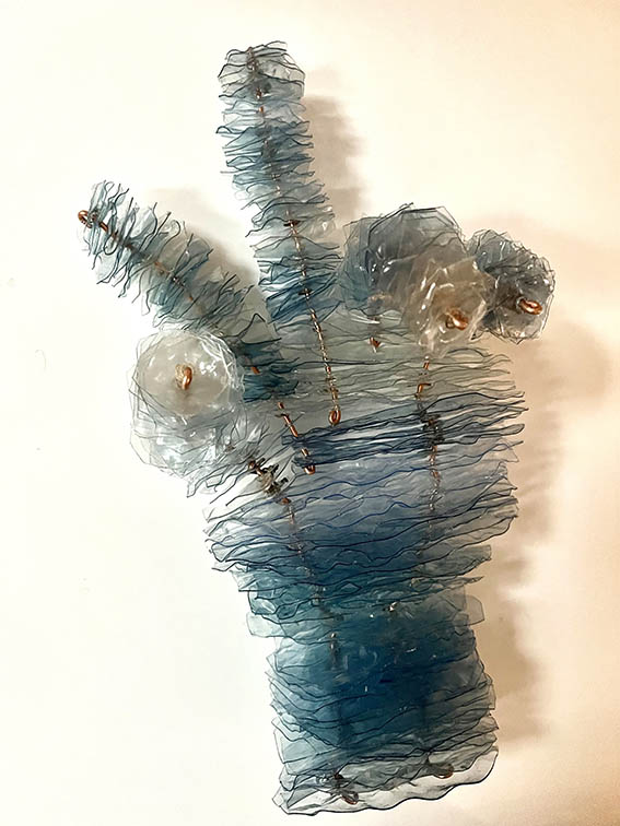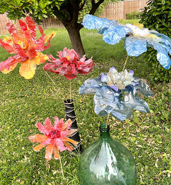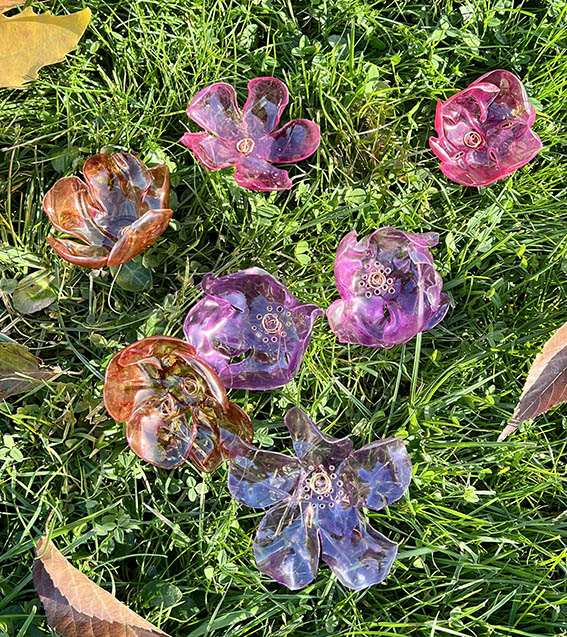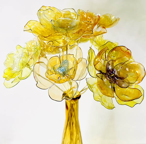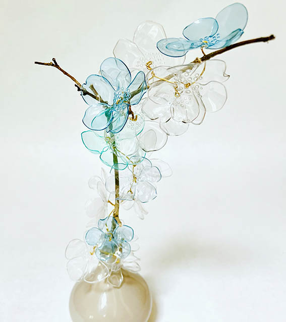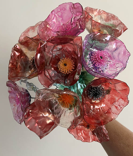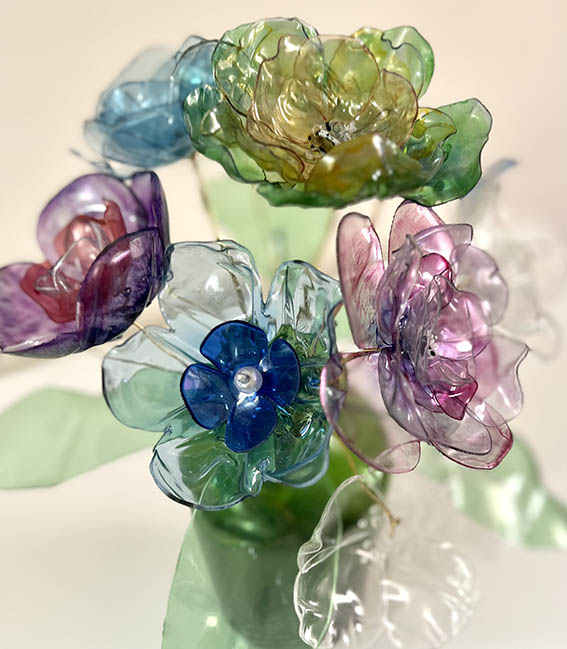 Artiste dans l'âme, j'ai souhaité m'investir à ma manière dans la cause environnementale, en valorisant des déchets par le design et la création. De mes premiers essais avec des bouteilles plastique est née une vraie passion, trouvrant là un réel potentiel de conception novateur. Infiniment inspirée par cette matière, je la transforme manuellement en ornements fantastiques, et l'associe parfois à mes peintures, leur apportant ainsi une singularité sans pareil. Je récupère également des objets dont on n'a plus l'usage et leur donne une nouvelle vie, sur le principe de l'upcycling, limitant ainsi la pollution.