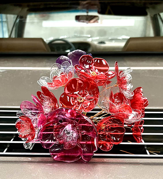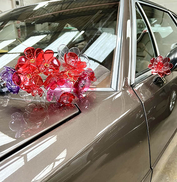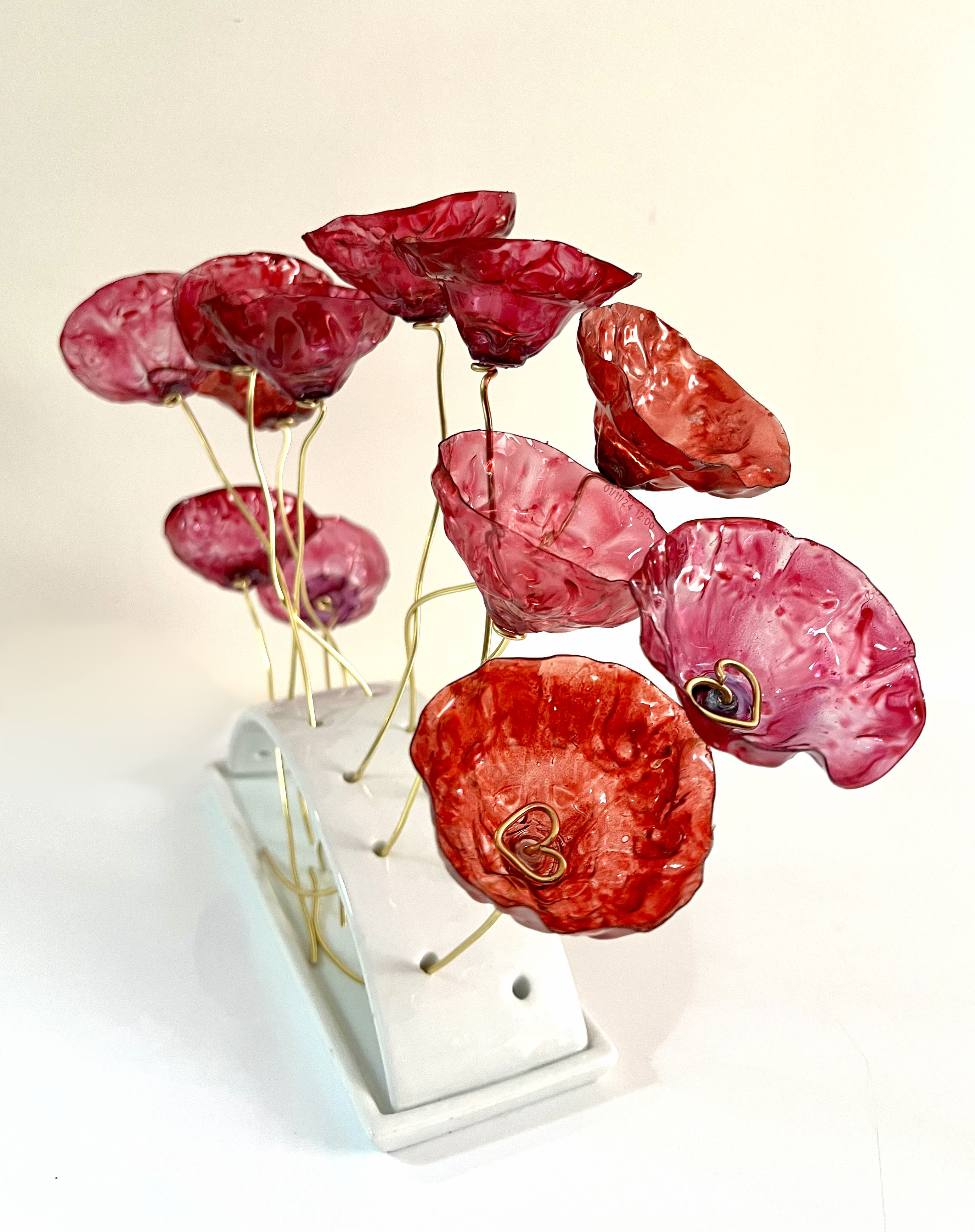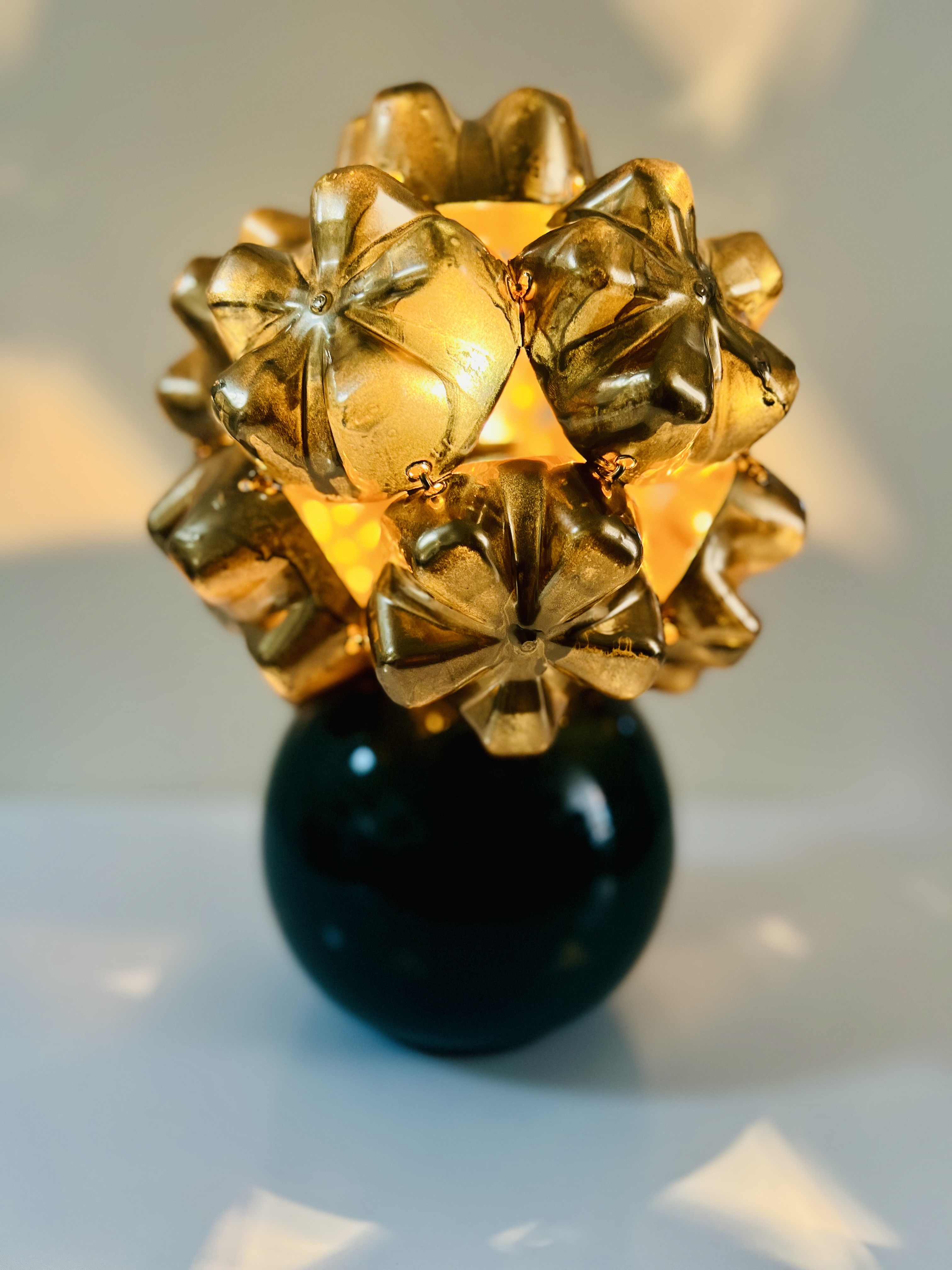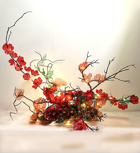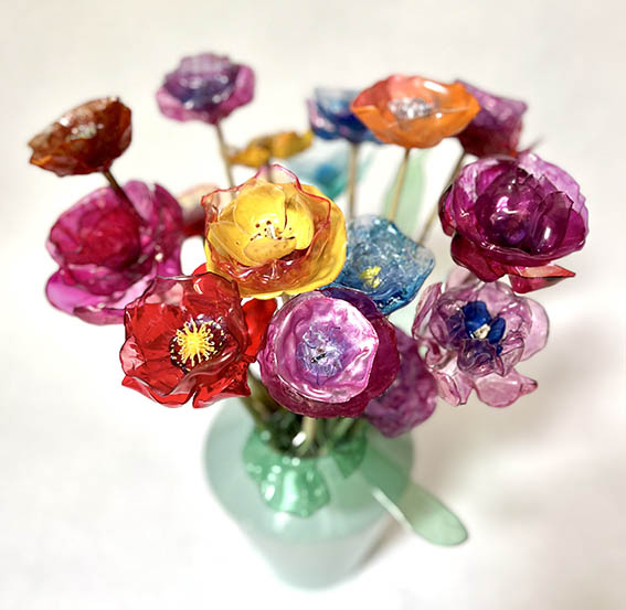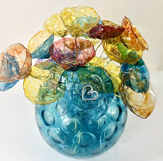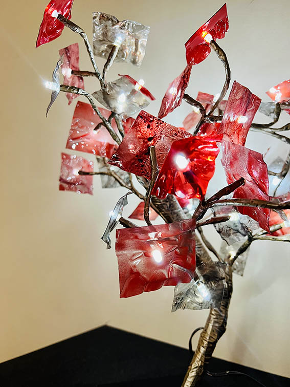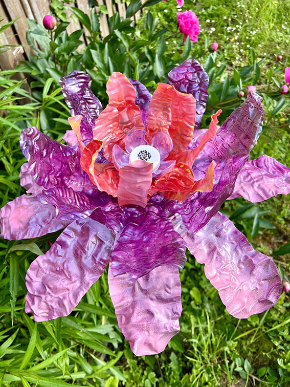 Artiste dans l'âme, j'ai souhaité m'investir à ma manière dans la cause environnementale, en valorisant des déchets par le design et la création. De mes premiers essais avec des bouteilles plastique est née une vraie passion, trouvrant là un réel potentiel de conception novateur. Infiniment inspirée par cette matière, je la transforme manuellement en ornements fantastiques, et l'associe parfois à mes peintures, leur apportant ainsi une singularité sans pareil. Je récupère également des objets dont on n'a plus l'usage et leur donne une nouvelle vie, sur le principe de l'upcycling, limitant ainsi la pollution.